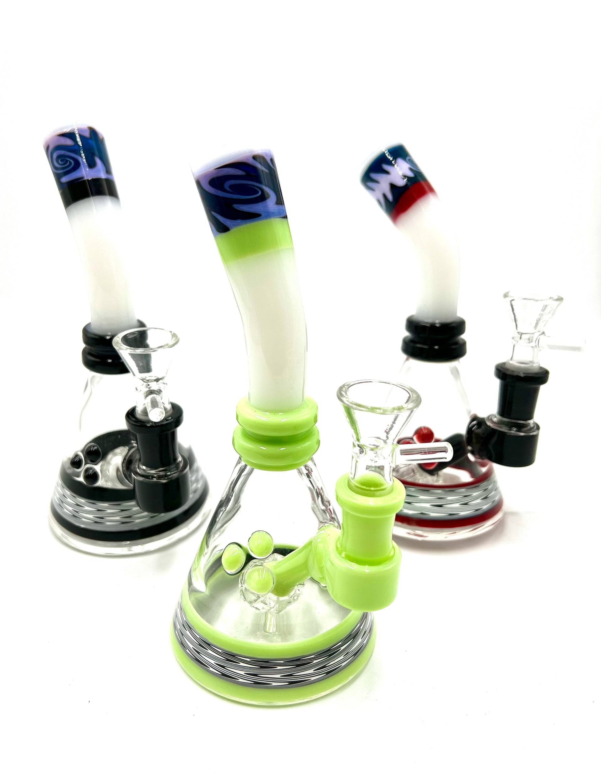 7" Curved White Tube Triple Bead Water Pipe