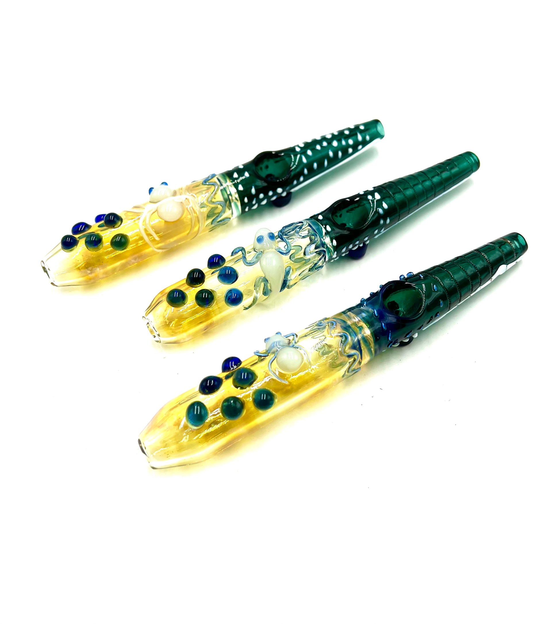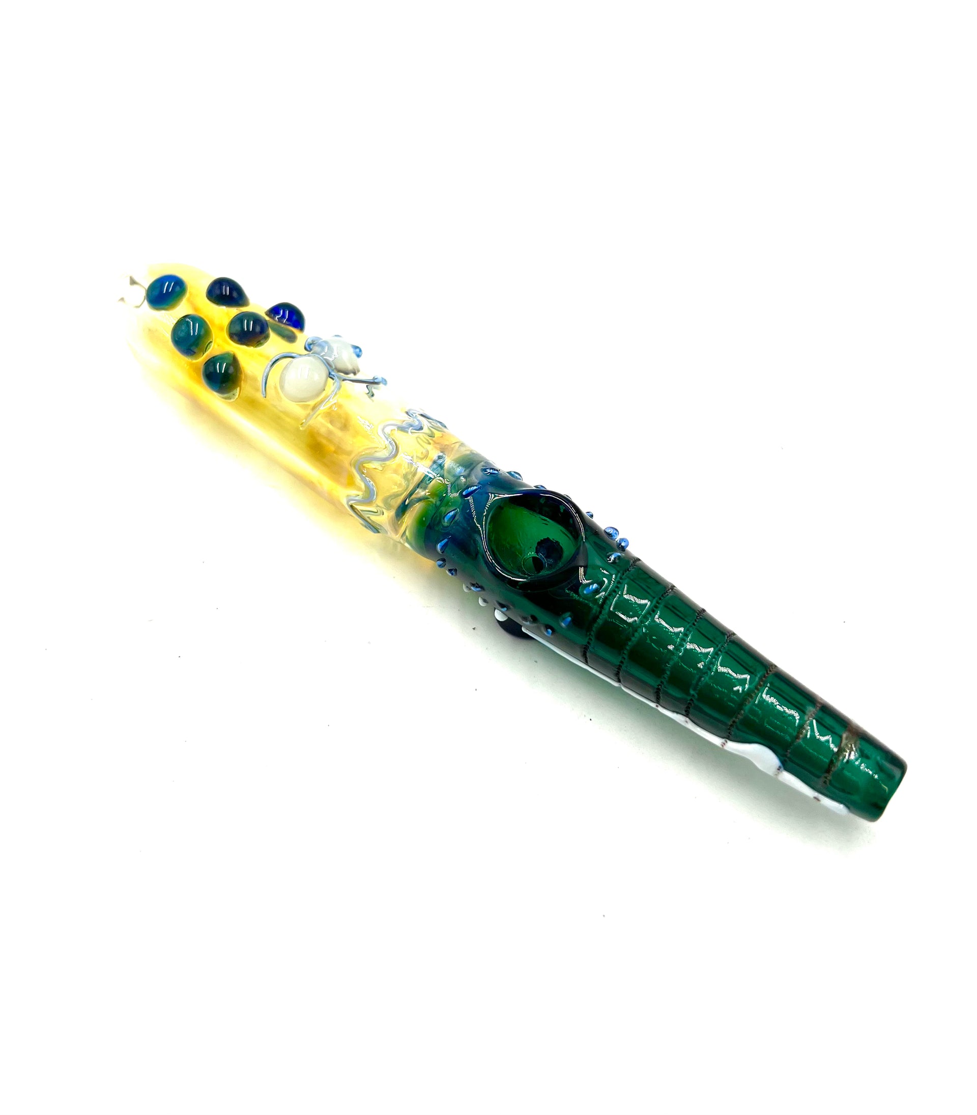 8" Beaded Narrow Mouth Teal Color Gold Fumed Steamroller
