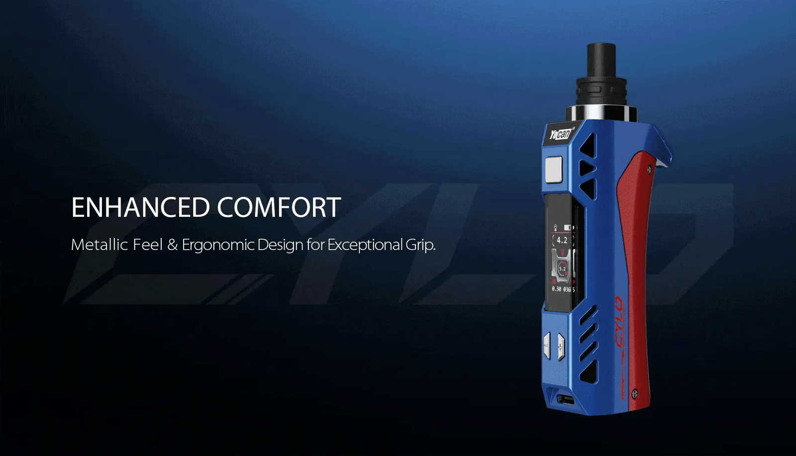 Yocan Cylo concentrate vaporizer with adjustable voltage and OLED screen in multiple colors